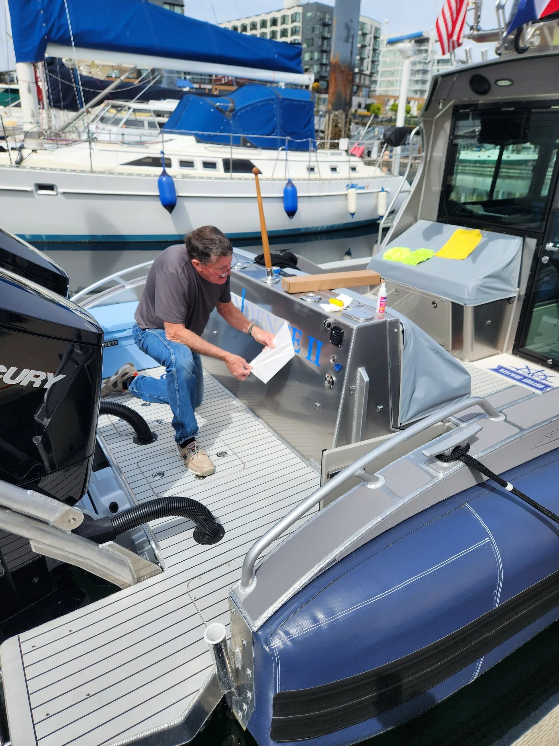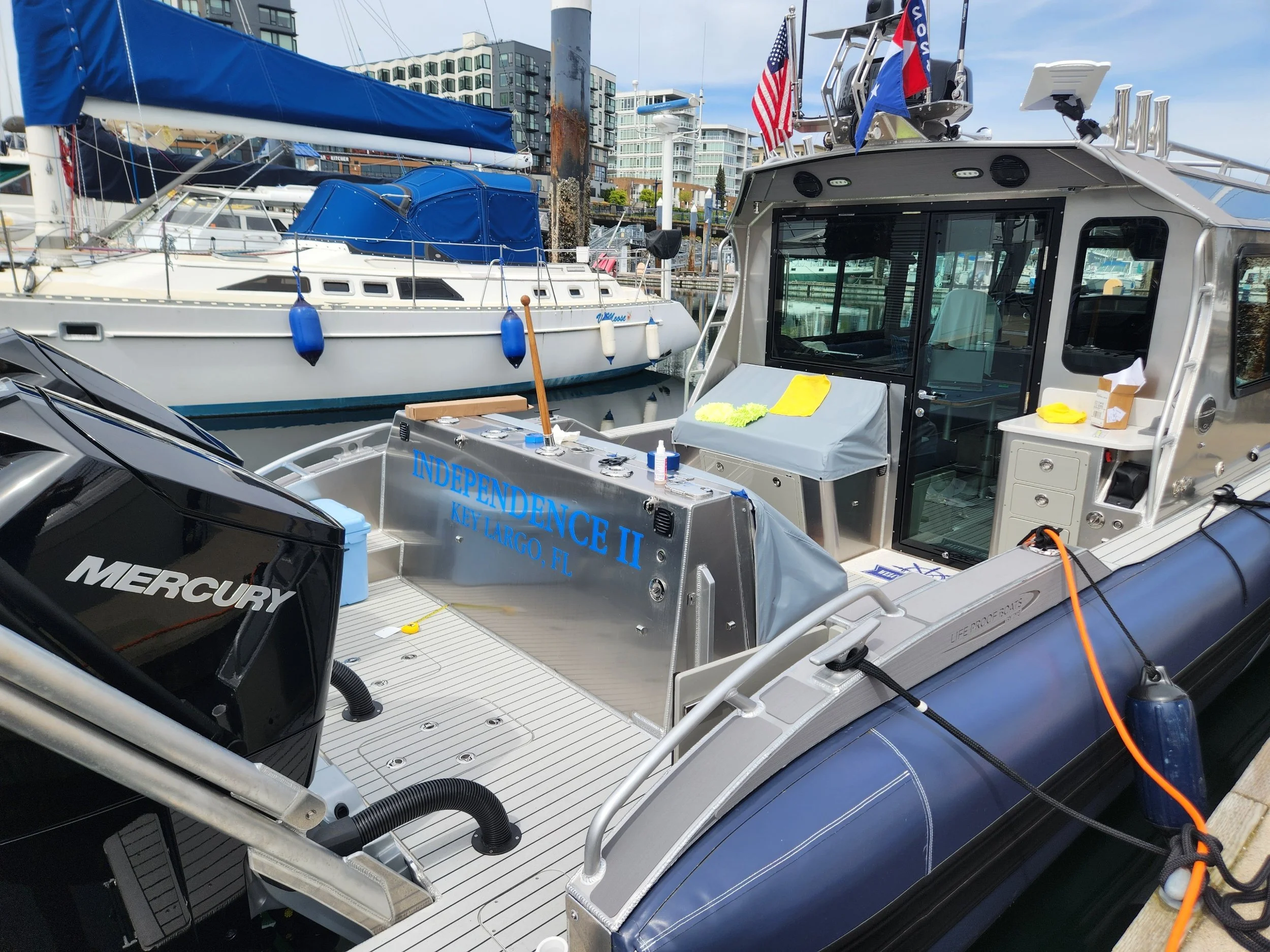 During our Shake Down we identified a few issues that have been, and are being, addressed by our friends at Life Proof. In between appointments we have also cruised to the massive marina in Everette, WA to pick-up a downrigger and other fishing gear and the charming towns of Winslow (Bainbridge Island) and Gig Harbor for quick hellos to local friends.
