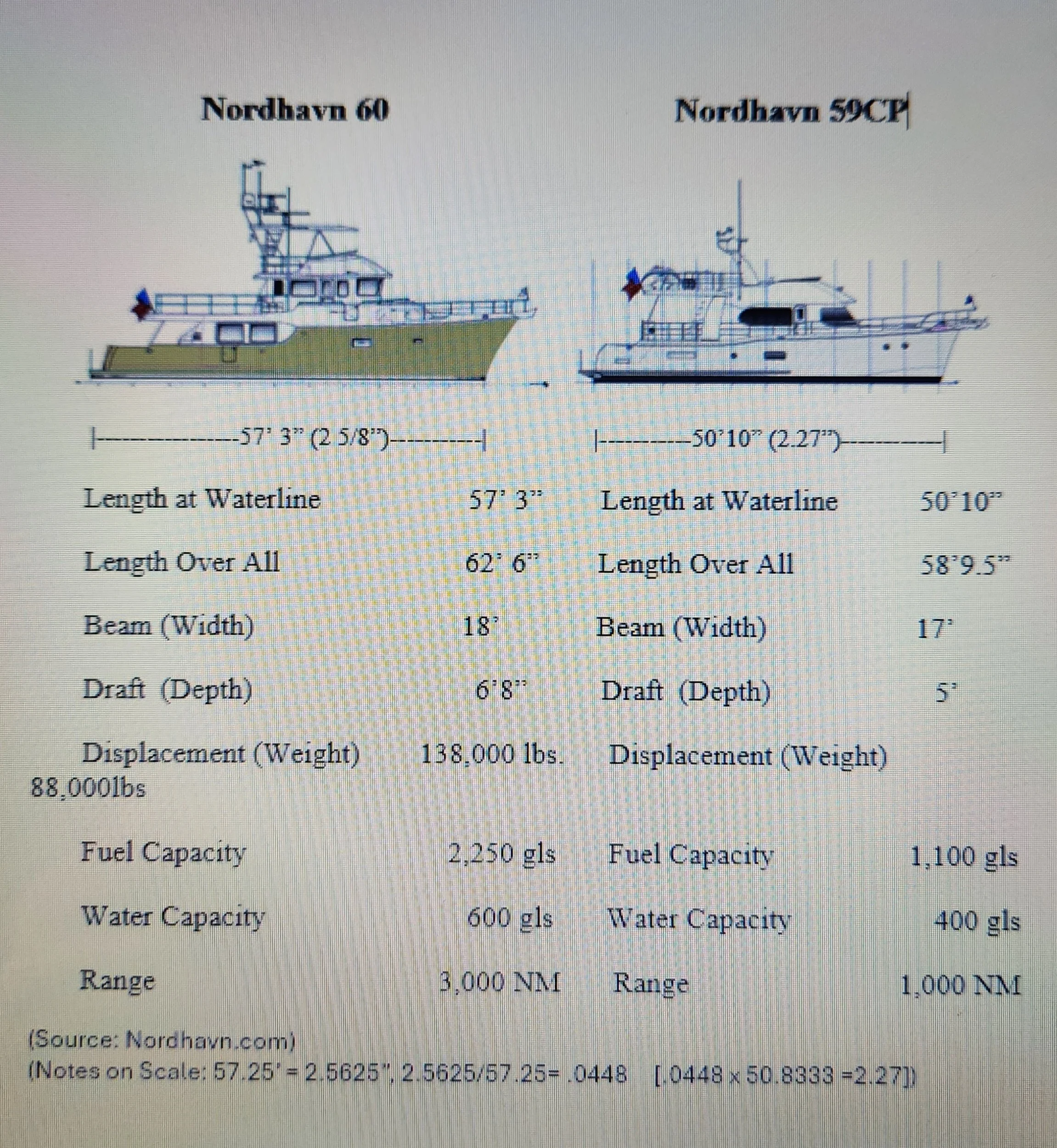 For valuation, I had very detailed drawings comparing my boat, a 59-foot Nordhavn Coastal Pilot, to a 60-foot Nordhavn trawler, which is what the (Marine) Assessor used as a comp in August. The 60-foot is totally different in many ways, principally weighing 69 tons vs ours at 35 tons, almost twice as much (see comparison in the image included). Also, in August the Assessor claimed that inboard boats had appreciated 49% in 2021 according to JD Power. I found the exact document after the hearing therefore no chance to counter, as ‘Apelets’ are not given the opportunity of discovery of material used by the Assessor, thus no way to counter his claim in the August hearing. The JD Power report referred to inboard boats, such as wake and water ski boats, and the Assessor used them as comparables! I showed pictures of those inboard boats, Malibu, Supra, Correctcrafts, etc. and mentioned how they could fit in your garage.